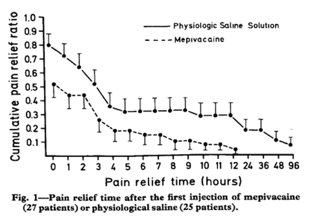 局所麻酔薬で治療するの比べ、生理食塩水を主体とした方が直後の鎮痛効果や半日後の鎮痛作用が良いとの報告もあります。